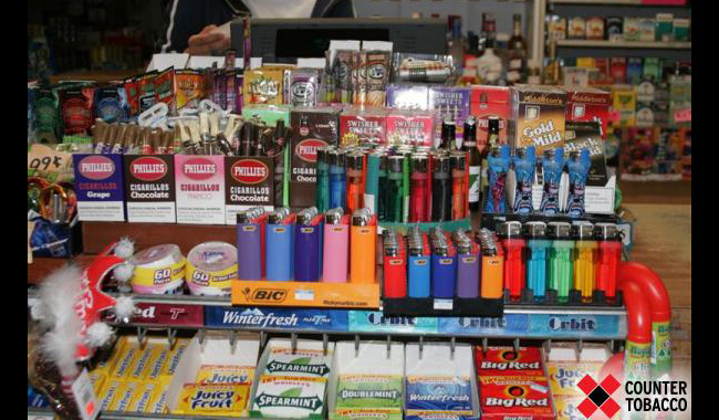 Honolulu, HI. Colorful, flavored cigarillos are displayed and available to pick up just above the gum. Photo courtesy of Counter Tobacco, http://www.countertobacco.org.